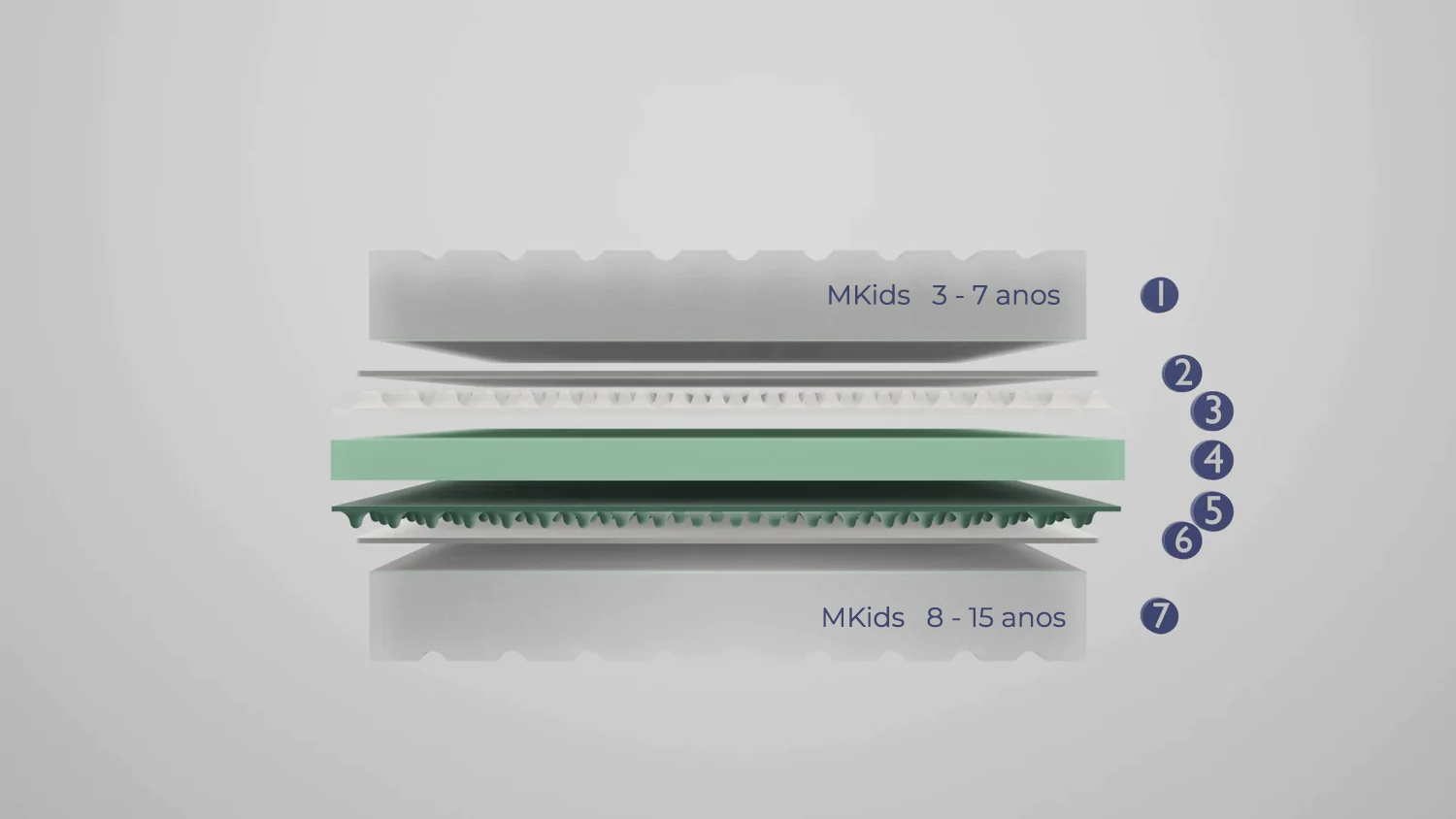 O design do colchão MKids foi concebido para promover o melhor desenvolvimento do seu filho dos 3 aos 15 anos.